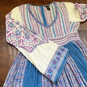 LUCKY BRAND Long Sleeve Bohemian Peasant Tiered Maxi Dress Floral Blue/White S