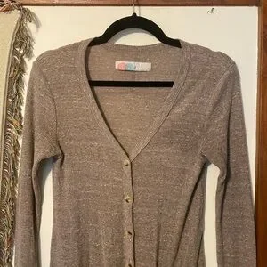 Free People beach ribbed up maxi button up cardigan in versatile taupe color. Comprised of textured, free-flowing thin knit. Long sleeve with big front pockets that are loose and big in style. The sleeves are unfinished edges for an intentional worn style. Sold out online. Check out my other listings to bundle and save!