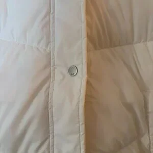 NWT Cozy and Adorable White Puffer Jacket. Button up, zipper closer, two side pockets with snap closure, silver accents, cinched cuff sleeves, quilted pattern and just so cute!