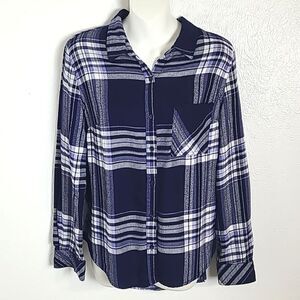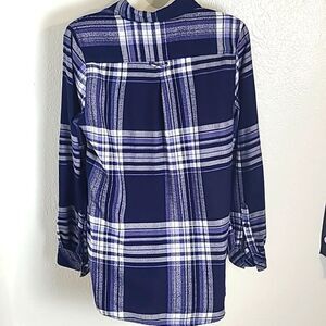 * Navy blue & white plaid buttondown shirt