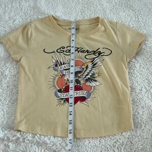Ed Hardy Womens Baby Crop Top Logo Brave Hearts Tee Sz M Cotton Blend Grunge