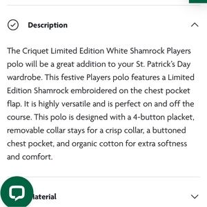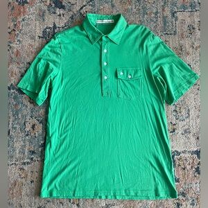 Stylish and comfortable green polo shirt perfect for casual outings, golf, etc. Excellent like new condition. Embroidered white shamrock at chest pocket.