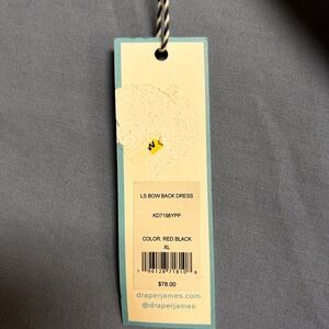 Draper James Red and Black Plaid Long Sleeve Dress with bow detail XL NWT