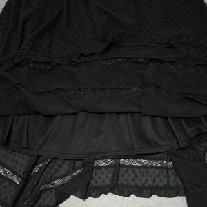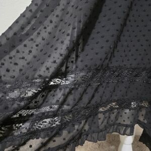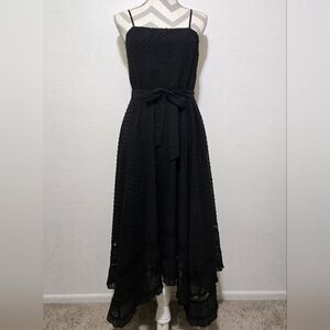 AQUA Black Midi Dress Swiss Dot Lace Inset Handkerchief Hem Tie Waist Small