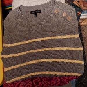 Banana Republic Women's Sweater in Gray and Cream Stripes