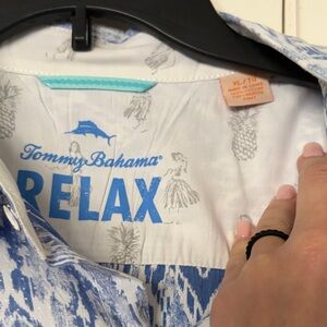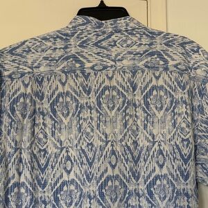 Tommy Bahama Blue and White Button Down Patterned Shirt
