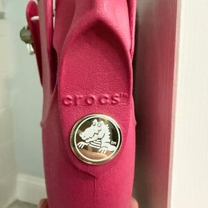 Vibrant fuchsia shoulder bag with unique cut-out design. Comfortable handle for easy carrying. New without tags. CROCS material and easy to wipe clean. 12x2x8 inches with an approximate 6” shoulder drop.