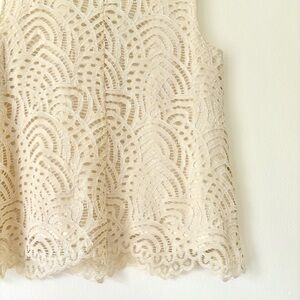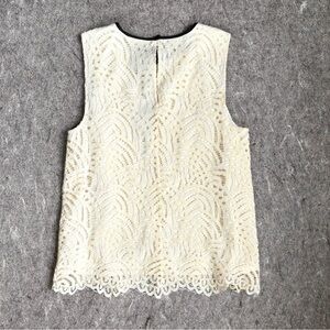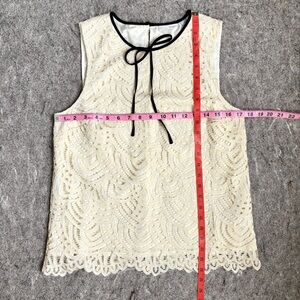 Cream Lace Sleeveless Top with black satin ribbon bow trim by Halogen
