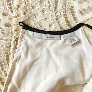 This top has minimal stretch. Size tag M. Please check measurements for fit: underarm to underarm 17.5", length 24.5". Mannequin is a dress size 4 to 6.