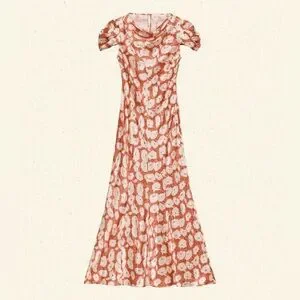 A favorite of our co-founder, Katherine, the ‘30s-inspired Alna Dress is crafted from buttery silk satin and graced with our Fleurs d’Anemone print. It features a cowl neckline, short sleeves with draped volume, and a midi-length skirt. An invisible side zipper offers a fitted bodice, while a delicate button closure fastens at the back neck.