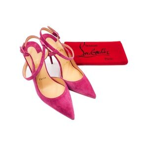 Christian Louboutin Pink Suede Slingback Cross Strap Buckle Pumps Heels EU 38