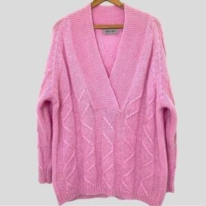 Amanda Smith Coquette Soft Girl Cloud Luxe Pink Mohair Sweater L Cable Knit