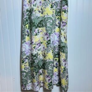 LOFT Patchwork Midi Dress Floral Sleeveless with Ruffle Detail sleeveless SZ 10
