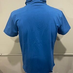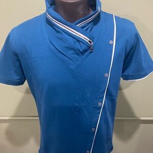 Vassari Men's Blue Short Sleeve Shirt slant button Shawneck modern fit