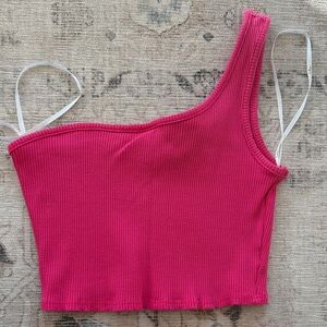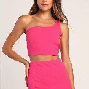Lulu’s Pink One-Shoulder Crop Top and Skirt Set
