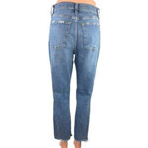Abercrombie & Fitch Blue Denim Ultra High Rise Ripped Straight Mom Jeans Sz 27