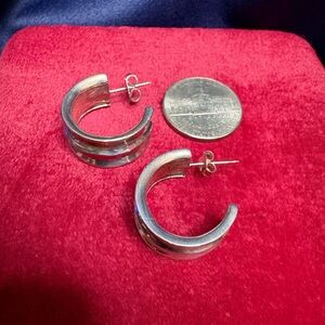 These beautiful 925 sterling silver hoop earrings add a touch of sophistication to any outfit. These earrings are 12 grams of quality solid sterling silver with an amazing retro design. These earrings do have some weight to them when wearing them, and give off a great Statment vibe! Beautiful vintage earrings for casual or formal wear!