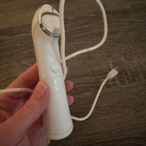 Sleek Arbonne skincare tool in white and silver. Comes with USB cable.