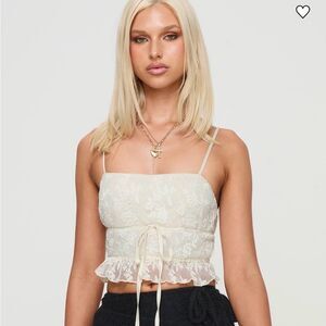 🤍 Princess Polly Lace Ruffle Cami Top – Cream, Size 0 (AU 4)
