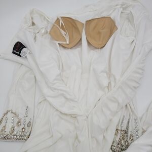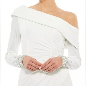 Mac Duggal Jewel Cuffed Asymmetrical Off Shoulder White Dress, Size 12.