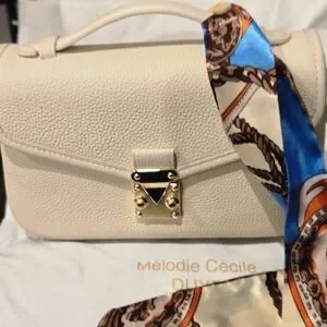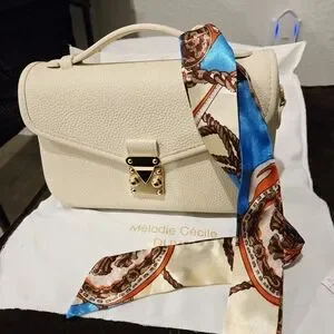 Le Petit Paris 15" crossbody bag from the brand Mélodie Cécile (also known as DUYP, or Dress Up Your Purse). Color "buttercream"
