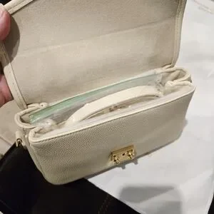 Design: It features a structured, satchel-style design with a top handle, an S-lock closure, and an accordion-style interior with three compartments.