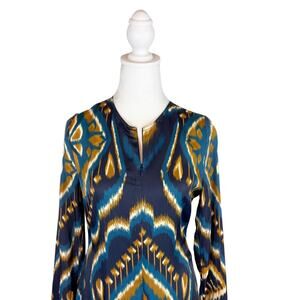 This Farm Rio Lenzing Ikat Maxi Dress embodies effortless tropical elegance. Crafted from eco-conscious LENZING™ ECOVERO™ viscose, it features a bold ikat-inspired print in striking blue and orange tones. The round neckline, long sleeves, and sweeping maxi length create a fluid, elongated silhouette that transitions beautifully from daytime gatherings to evening occasions. A standout piece for lovers of artful prints and sustainable fashion.