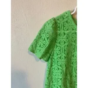 Vibrant green lace blouse. Short sleeves. Elegant design.