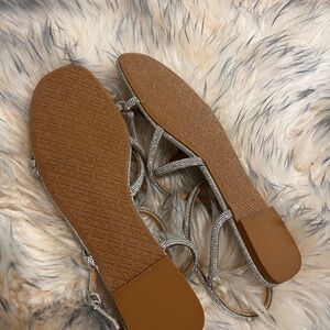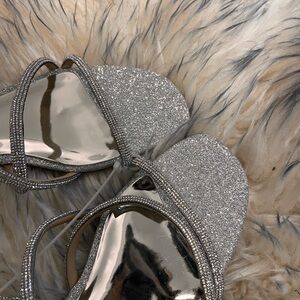 Dazzling silver sandals with sparkling straps. Perfect for glamorous events.