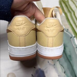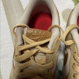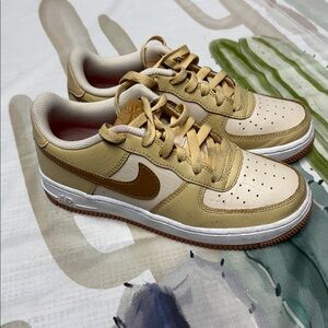 Comfortable Nike sneakers with a stylish tan and cream design. Perfect for active kids.