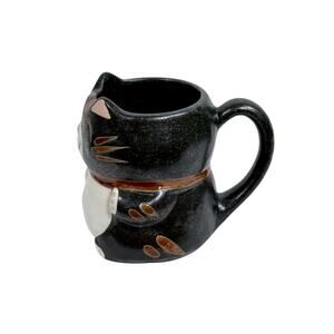 Mino Ware Japanese Lucky Cat Pottery Mug Cup Manekineko Black Matte Finish