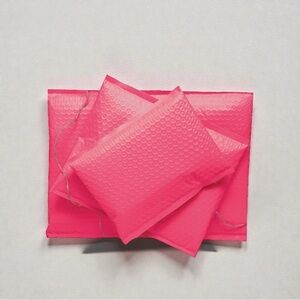 Vibrant hot pink poly bubble mailers. Perfect for secure shipping.
