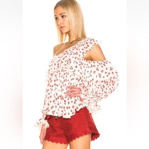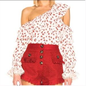 Self-Portrait Ditsy Floral Print One-Shoulder Blouse