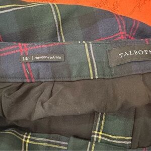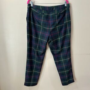 Talbots Hampshire Ankle Pants Plaid Green Mid Rise Women 14P Holiday Christmas