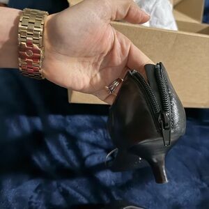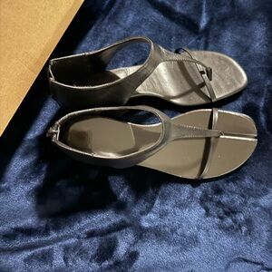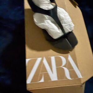 Chic black sandals from Zara. Sleek design with a modern touch. Ideal for versatile styling.