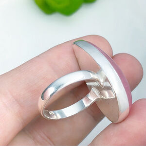 Pink Rainbow Moonstone Ring Size 9.25 almost 9.5 925 Stamped Sterling Silver 925 High Quality Filled Overlay Contemporary Boho Chunky Long Ring Handmade New without tags. Closed back. It is just to barely to the 9.5 line. This pink moonstone flashes blue as it engages with light. Includes packaging and organza bag or box. Genuine Gemstone jewelry made well to last. One side has some little imperfections I noticed close up under light. See photo. Stunning ring. Discounted for imperfection.