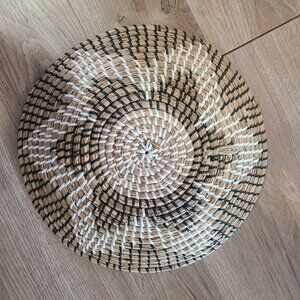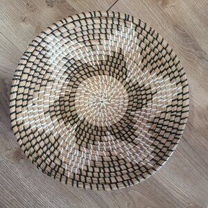 This Southwestern style Woven Basket Home Decor Wall Art features a 14" round design with a star pattern, perfect for any room in your home. The Southwestern style and natural finish make it a unique piece of wall art suitable for adults. Handmade with mixed materials, this hanging basket adds a touch of artistry to your living space. Easy to clean with a damp cloth, this one-of-a-kind item is a beautiful addition to your decor collection. The colors are brown, black, white and tan. I purchased this when I lived in Arizona. Its in great condition.