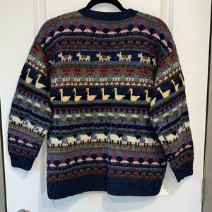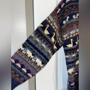 Vtg LL Bean Cardigan Womens Medium Wool Animal 80s Prairie Sheep/geese/Horse