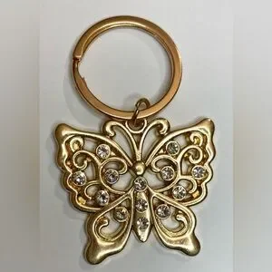 Elegant gold butterfly keychain adorned with sparkling rhinestones. Perfect accessory for keys or bags.