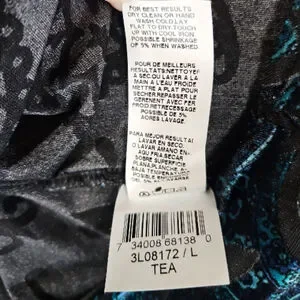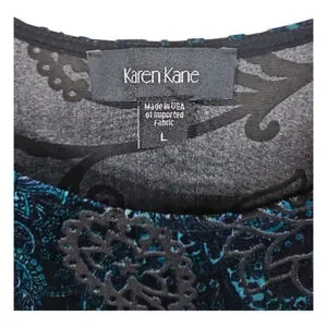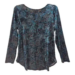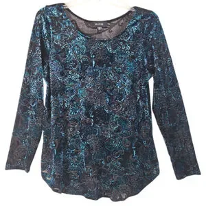 Karen Kane Blue & Black Velvet Burn-out Paisley Long Sleeve Top Size L