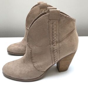 Womans Western cowgirl boots Booties Faux suede Beige Size 8 Block Heel