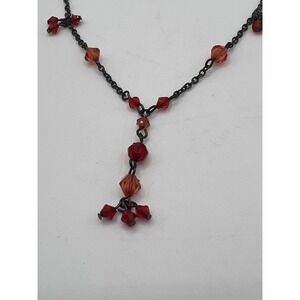 Vintage Red Crystal Y Necklace Silver Tone Dangle Drop 17" Valentine Gift