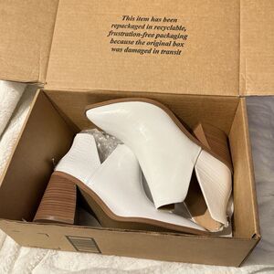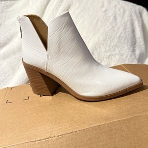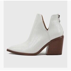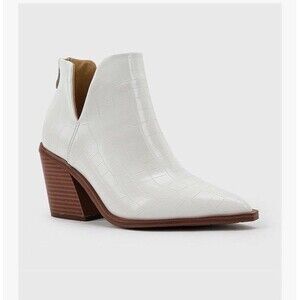 Womens Slip on Ankle Boots V Cutout Pointed Toe Chunky Mid Heel Booties Size 8.5