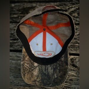Drake Waterfowl Non-Typical Mesh-Back Adjustable Camouflage Trucker’s Cap Hat T3. Camo cap by Drake with bold orange details. Ideal for outdoor wear.