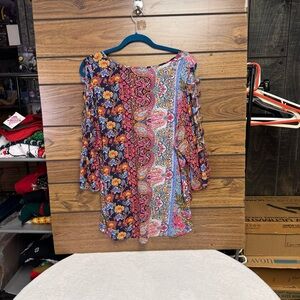 Cupio Multicolor Paisley Top size medium ladder sleeves hi/low cut