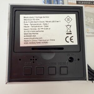 Cloudnola block clock with digital display. Includes power cables and batteries.