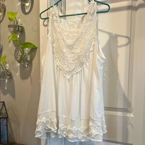 This elegant women's top features intricate lace detailing, perfect for adding a touch of sophistication to any outfit. The soft white color complements any wardrobe. Some dirt on the front lace, will come out in the wash