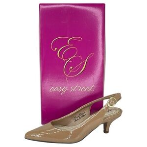 Easy Street Faye Nude Patent Leather Womens Slingback Kitten Heels Size 6M