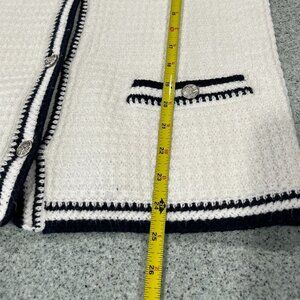 J. Jill Sz M Sweater Chucky Knit Pockets Cream Navy Button Up Crew Neck