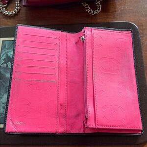 Beautiful Chanel Long Wallet In Black Leather Pink Leather Inside